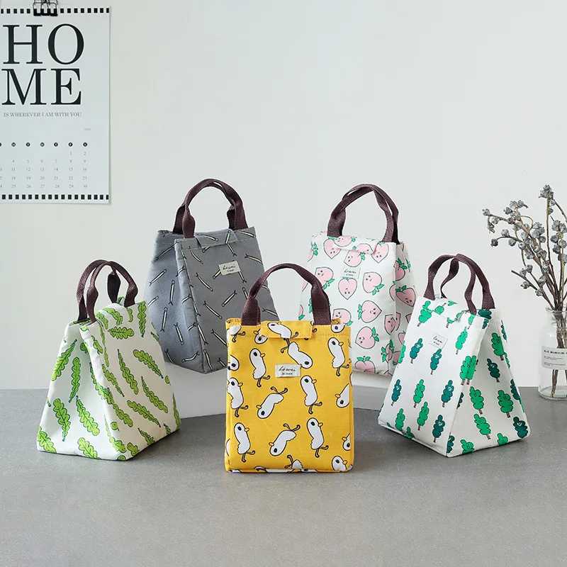 صور ل المحمولة الغذاء الطازجة الغداء حقيبة للماء الحرارية معزول وجبة خفيفة نزهة مربع كاري حمل حقيبة التخزين السفر الغداء كيس طعام