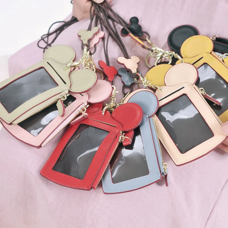 استعارات ل 1 قطعة ماوس الأذن بو سستة حامل بطاقة الحلوى اللون المحمولة سلسلة ID حافلة الهوية شارة الحبل بورت كارت الائتمان حقيبة التخزين