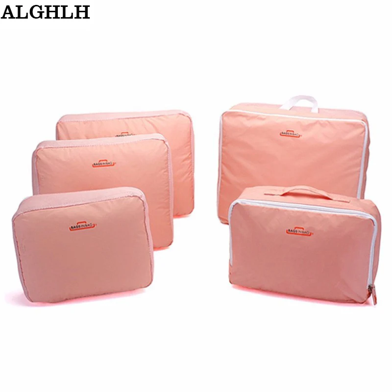معرض من Alghlh 5 قطع النايلون شبكة سحاب منظم تخزين حقيبة السفر المحمولة الملابس الأمتعة حقيبة الحقيبة مضغوط مقسم حاويات