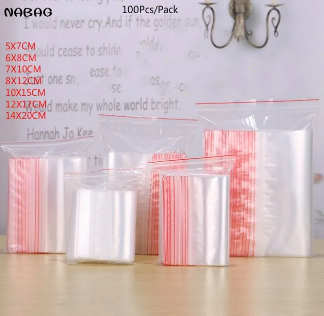 معرض من NABAG 100 قطعة/الحزمة واضح الذاتي ختم الرمز البريدي قفل البلاستيك تخزين أكياس تخزين المواد الغذائية تغليف أكياس 10*15 سنتيمتر/ 8*12 سنتيمتر/6*8 سنتيمت...